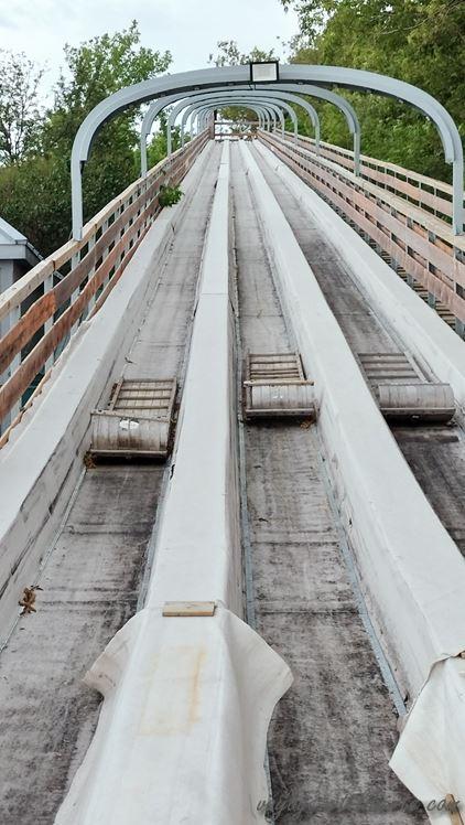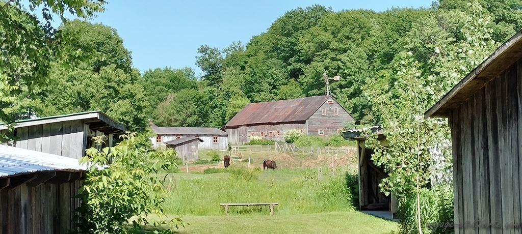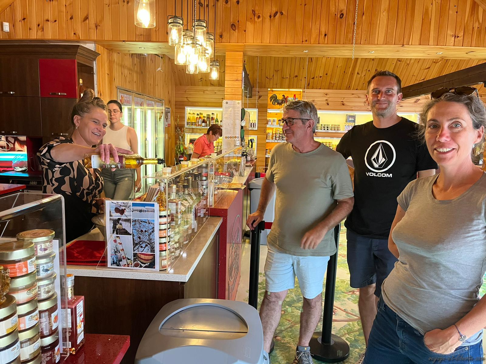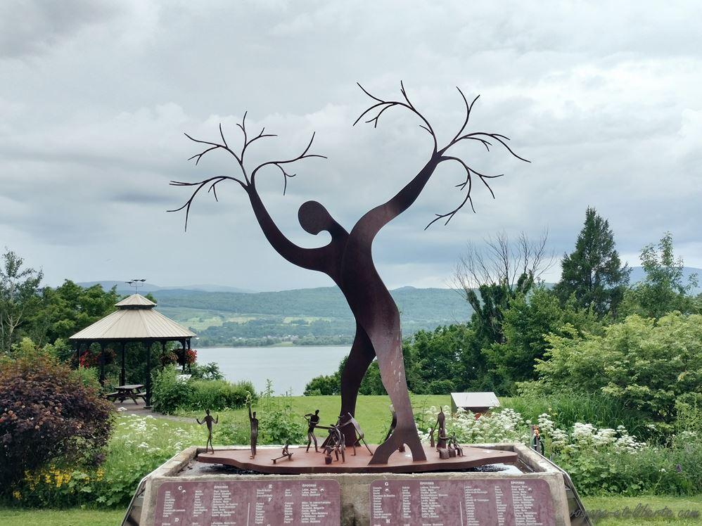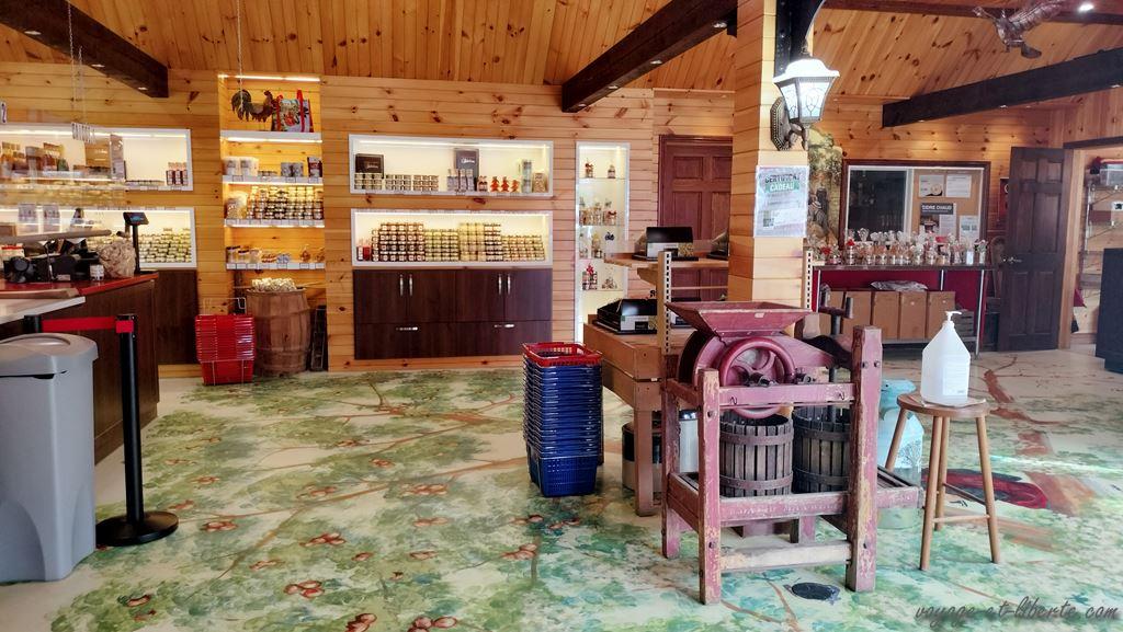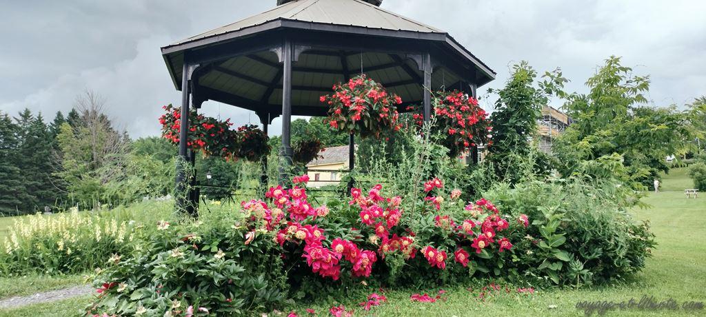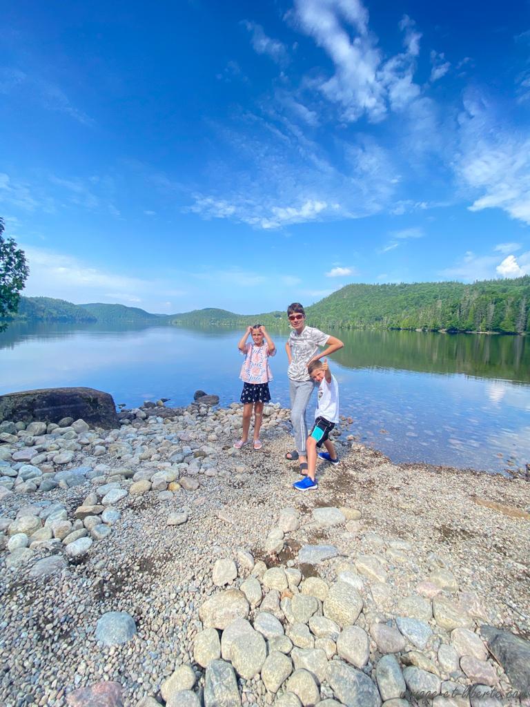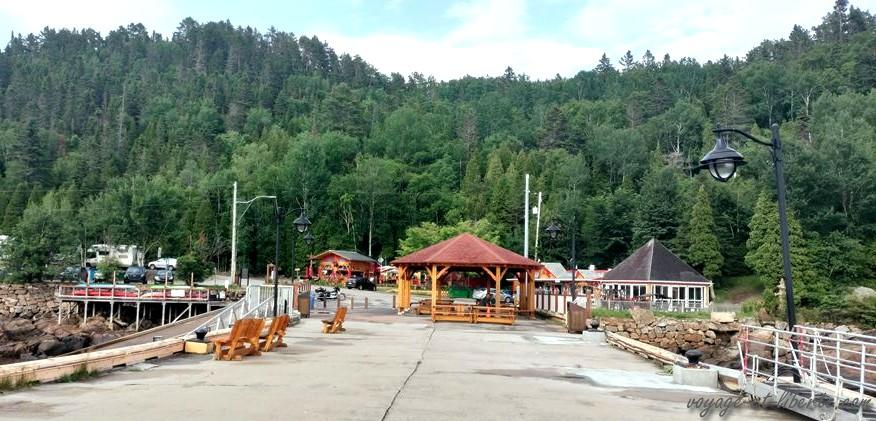 Au matin, nous poursuivons notre tour du lac par le nord. Un village « d’antan » est annoncé à quelques bornes de notre endroit de bivouac. Arrivés surplace, même si le concept est tentant – il s’agit d’une reconstitution d’un village québécois avec des personnages en tenues – nous renonçons : 46 dollars canadiens par adulte l’entrée et 25 pour les enfants, c’est un peu cher, surtout s’ils se lassent au bout d’un quart d’heure.