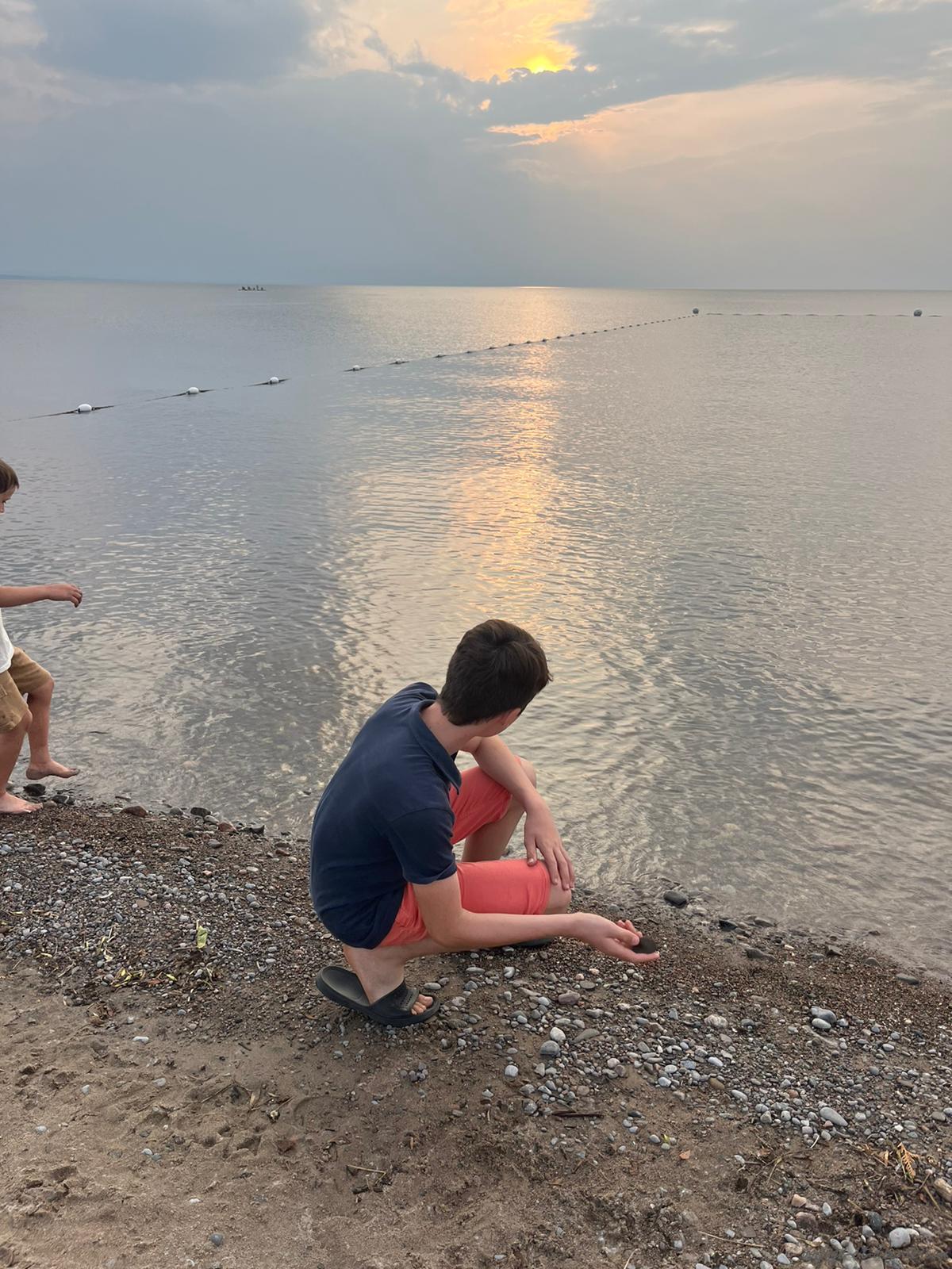 Les enfants, grand et petits, s’éclatent à jeter des cailloux dans l’eau !
