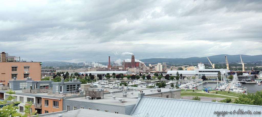 Arrivés devant le séminaire, en haut des remparts, la vue sur le fleuve et le vieux port est … bouchée par une usine !