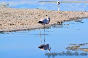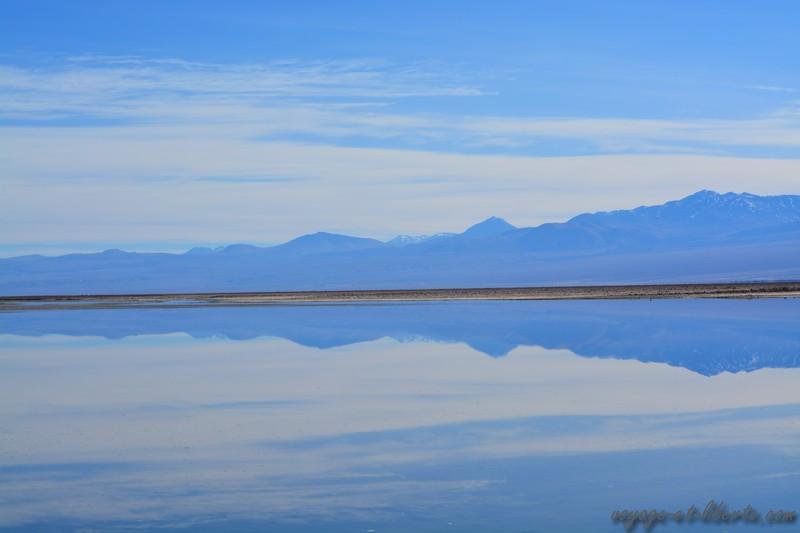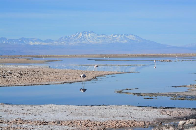 Aussi aride et salé qu’il soit, le désert d’Atacama comporte de splendides lagunes dans lesquelles se reflètent les volcans qui le bordent.