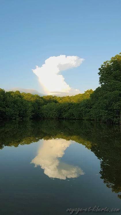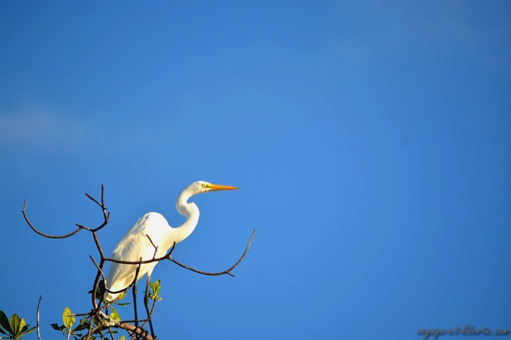 Ce qui nous intéresse, c’est de nous balader sur une magnifique lagune bordée de milliers de palétuviers où nichent environ 270 espèces d’oiseaux.