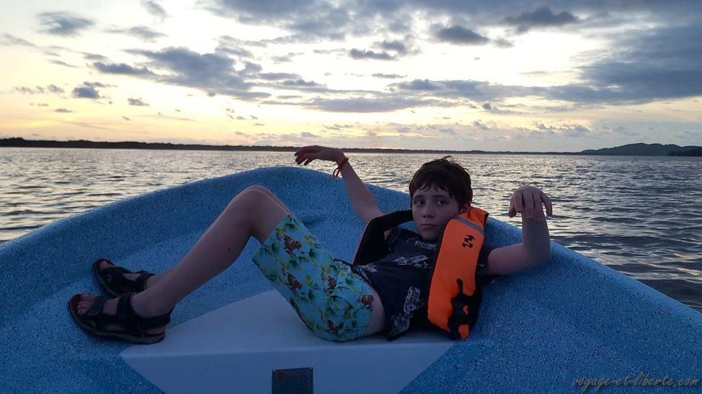 La nuit tombe et le coucher de soleil cède rapidement la place à l’obscurité. Nous attendons la nuit pour vivre une autre expérience que nous n’avons jamais faite : nager dans de l’eau contenant du plancton luminescent. Aucune photo ne permettant d’en rendre compte, imaginez simplement nager la nuit, dans une eau par définition obscure, mais qui s’allume autour de vous chaque fois que vous faites un mouvement. C’est le contact avec le plancton qui déclenche sa phosphorescence. Plus vous brassez de l’eau, plus la lumière devient forte. Autant dire que nous adorons. Le lanchero, sympa, ne nous donne pas de limite de temps pour en profiter et, sans abuser, nous nous baignons longuement pour admirer ce phénomène totalement magique. Sans hésitation je recommande ce tour à la nuit tombée !