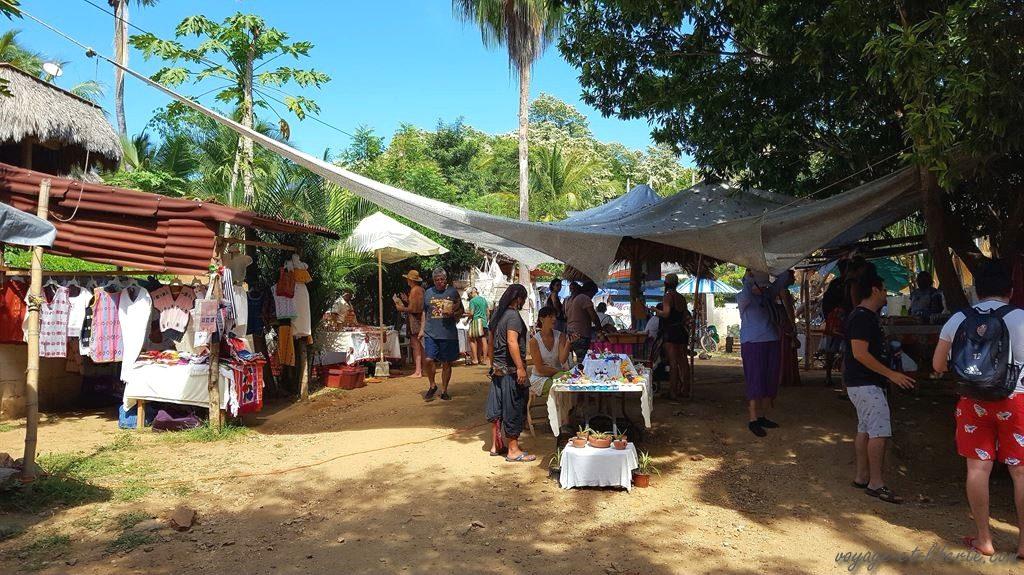 Sur la route nous faisons une halte à El Mazunte, charmant petit village aux toits en palmes. Nos amis Alix et Julien (que nous ratons malheureusement de peu), nous en ont dit le plus grand bien. Et je comprends qu’ils en soient tombés amoureux. L’architecture est très harmonieuse, l’accent est mis sur la préservation de l’environnement et des tortues. Un petit marché hippie-chic nous permet de nous approvisionner en produits naturels. La plage est belle et sans vagues démesurées… Nous y flânons avec plaisir et n’en repartons qu’en raison du festival de jazz qui remplit le village de monde.