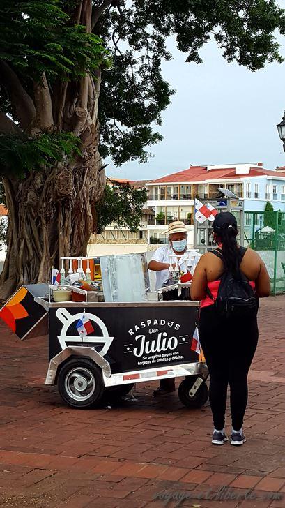 Au Casco Viejo, le « petit Carthagène » de Panama, c’est la déroute totale. Le jour où nous le revisitons, ce quartier hautement touristique en temps normal est désert. La plupart des restos et des hôtels sont à vendre, seuls quelques marchands de souvenirs sont encore présents pour vendre des babioles à des clients qui ne viendront pas. Ils ont l’air défaits, vaincus par la vie. Un chat passe, quelques femmes en tenues folkloriques font malgré tout des photos.