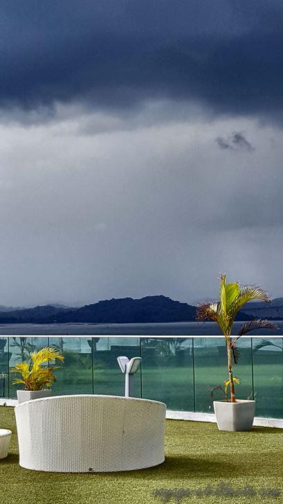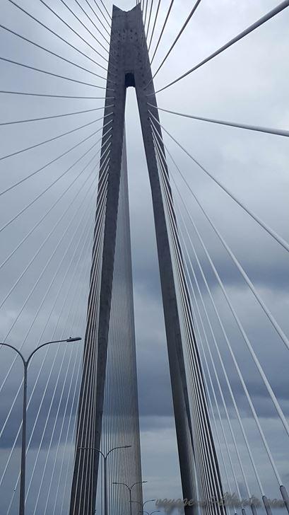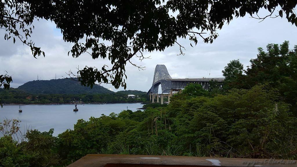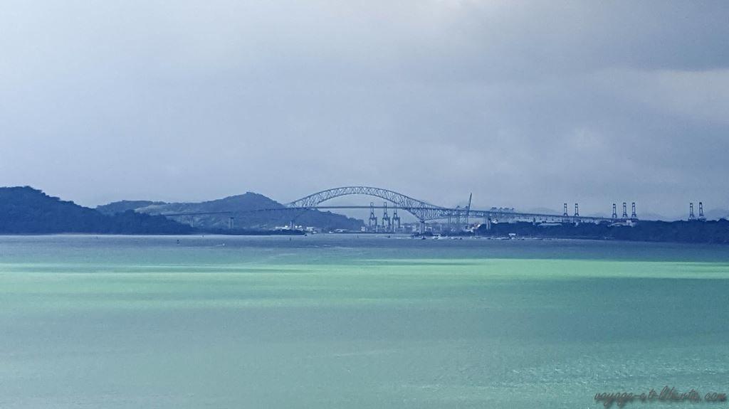 Entre 2 averses et 2 bourrasques, nous nous hasardons malgré tout à traverser le Pont des Amériques qui enjambe le canal de Panama.