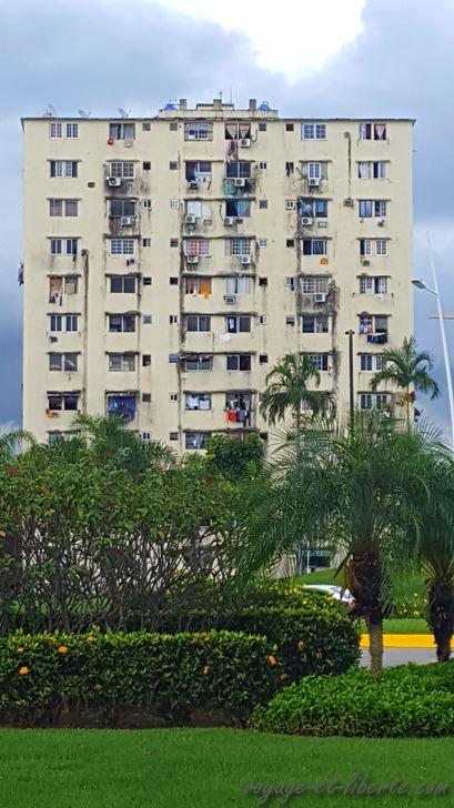 Voilà plus de 30 mois que nous ne sommes pas revenus à Panama City et au Panama tout court, pays que nous adorons pour plein de choses et détestons pour beaucoup d’autres (vous allez comprendre bientôt). La quarantaine, ici aussi, s’est éternisée pendant plus de 6 mois, très strictement. Les statistiques du conarovirus ne sont pas très bonnes dans le pays, mais ce qui nous choque le plus c’est l’état de pauvreté dans lequel la ville s’est enfoncée. Certes, les beaux quartiers semblent n’avoir été que peu affectés, bien que de nombreuses boutiques aient mis la clef sous la porte, mais les barrios déjà pauvres ont littéralement sombré. Il faut dire qu’au Panama les inégalités sociales sont terrifiantes, dans la mesure où 1 % de la population possède 82 % des richesses et qu’un panaméen sur 4 vit avec moins de 2 dollars par jour (par comparaison, en ville, 500 g de brocolis coûte 1,5 dollars et un ananas entre 1 et 2 dollars selon les quartiers). Je n’ai pas eu le coeur de photographier les quartiers pauvres, mais ces photos de quartiers intermédiaires vous montreront déjà dans quels taudis beaucoup de gens ont passé leur « simoizaine » à Panama City. Sans aides ou presque, bien sûr.