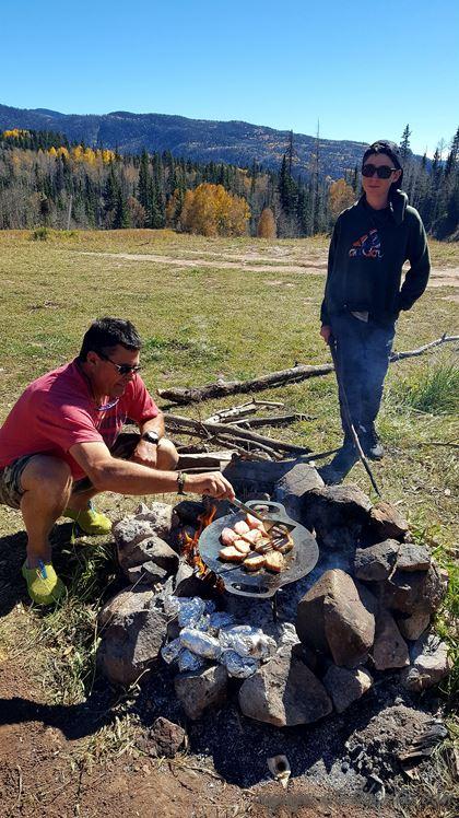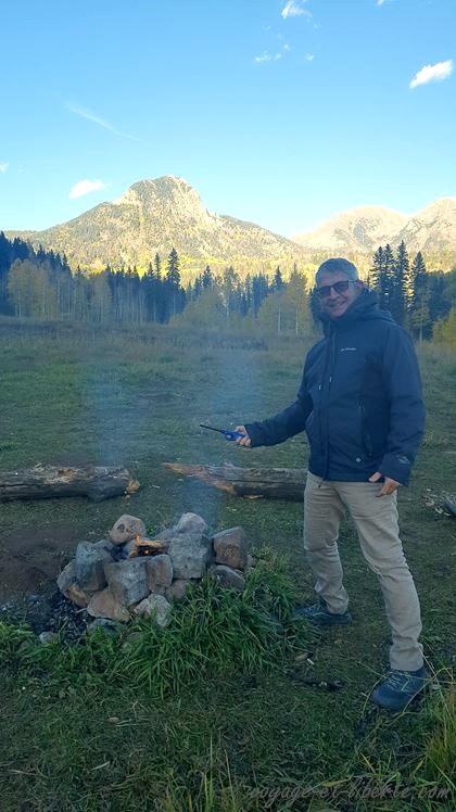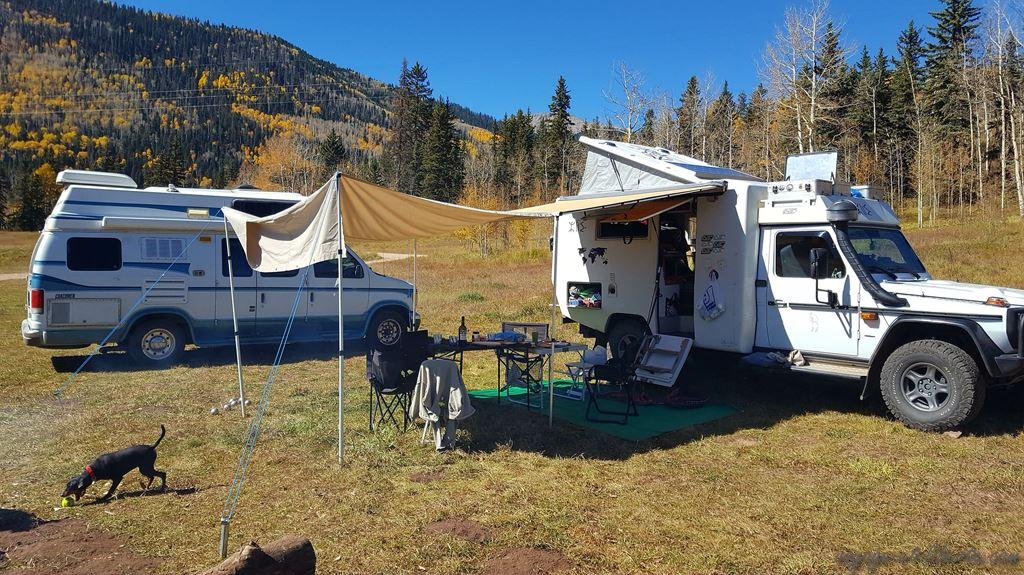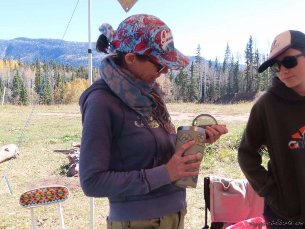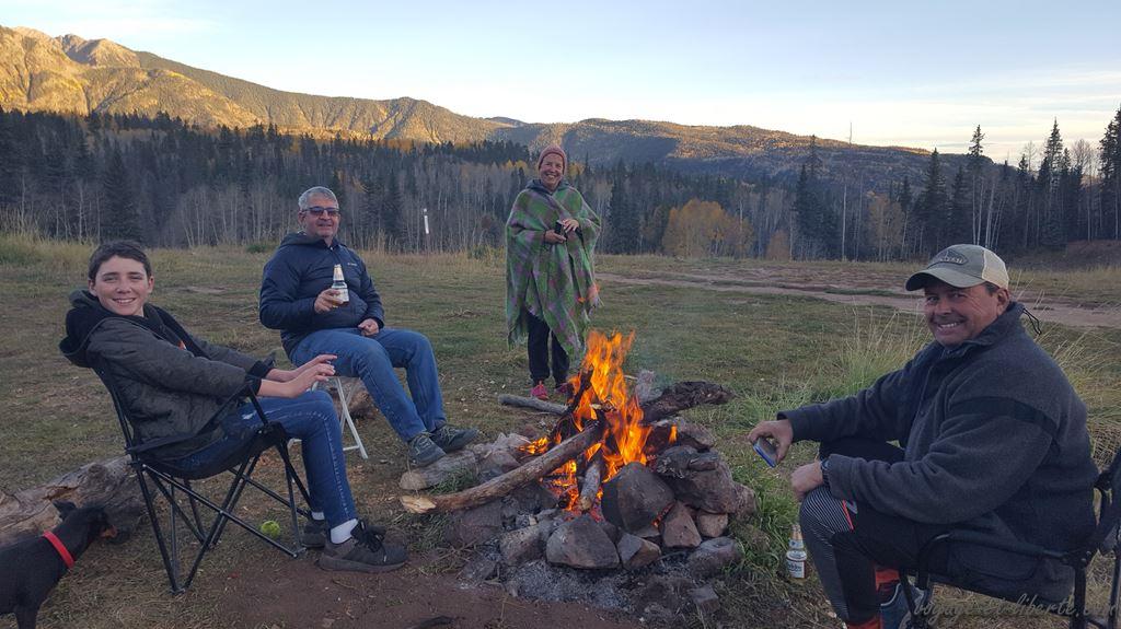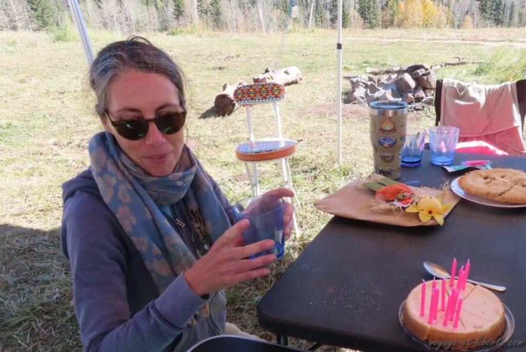 Le 15 octobre, comme chaque année, c’est mon anniversaire. Nous rejoignons Cathy et Philippe dans le BLM de l’avant, avant veille en pleine montagne. Il m’ont fait l’amitié de remonter depuis le Nouveau-Mexique pour passer ce jour en notre compagnie. Extra ! Encore merci à vous les gars, vous avez assuré +++ !