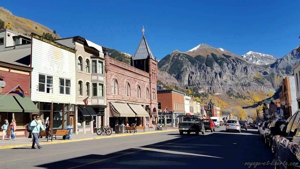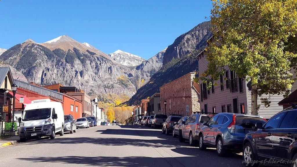 Ce qui nous enchante moins, c’est l’accueil peu chaleureux que réserve la ville de Telluride aux propriétaires de RV. Nous n’avions nullement l’intention d’y dormir (c’est absolument interdit de passer la nuit dans son véhicule), mais y stationner pour quelques heures est également problématique : les rues sont blindées de voitures garées et tous les parkings à 20 dollars sont pleins …