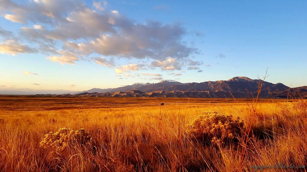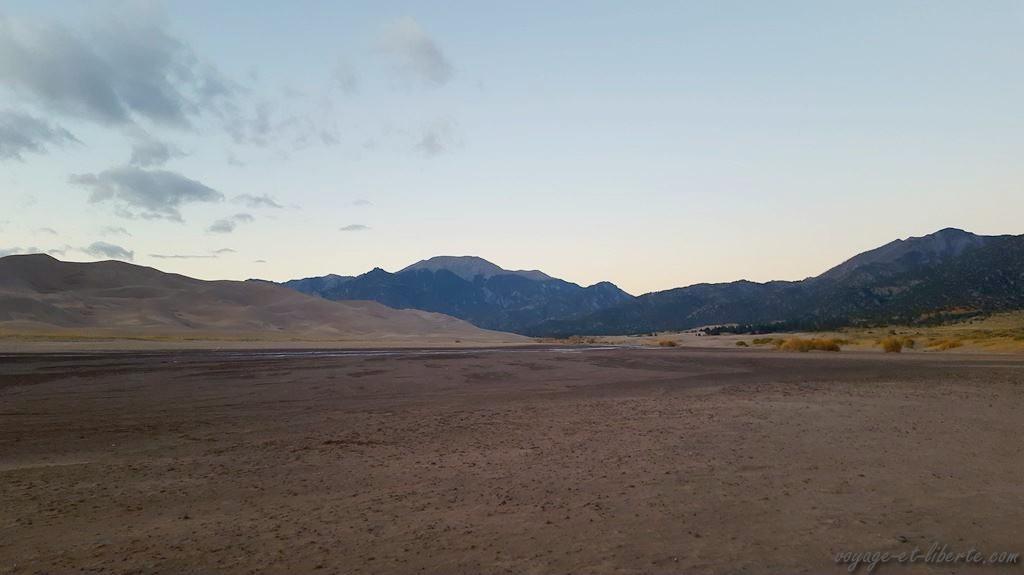 Nous arrivons en fin de journée à Great Sand Dunes. Le soleil ras donne des couleurs incroyables à la nature environnante.