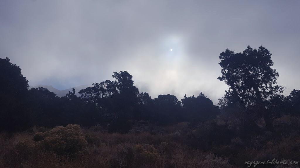 Coup de bol incroyable, dans la pénombre, Jérôme croit distinguer le camping-car de nos amis « Hasta la Luna », au loin, très loin, dans le camping du parc. Nous nous approchons, sceptiques. C’est bien eux ! Comme le camping est complet, ils nous proposent de partager leur emplacement et nous passons une bonne soirée à 10 dans leur véhicule. Serrés, mais ravis !
