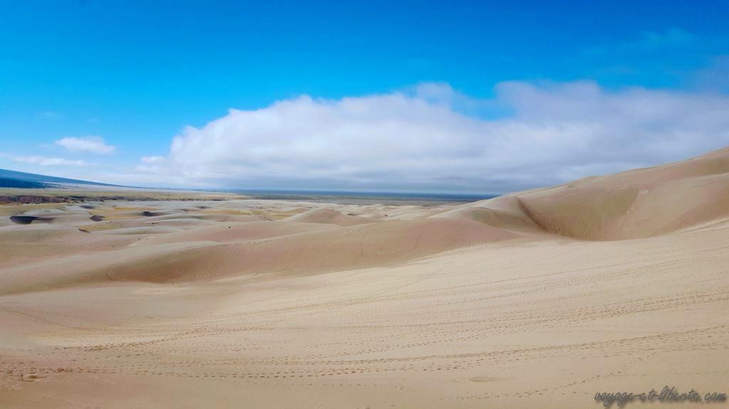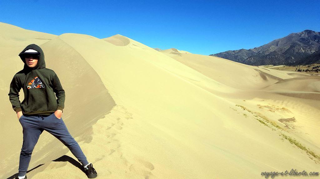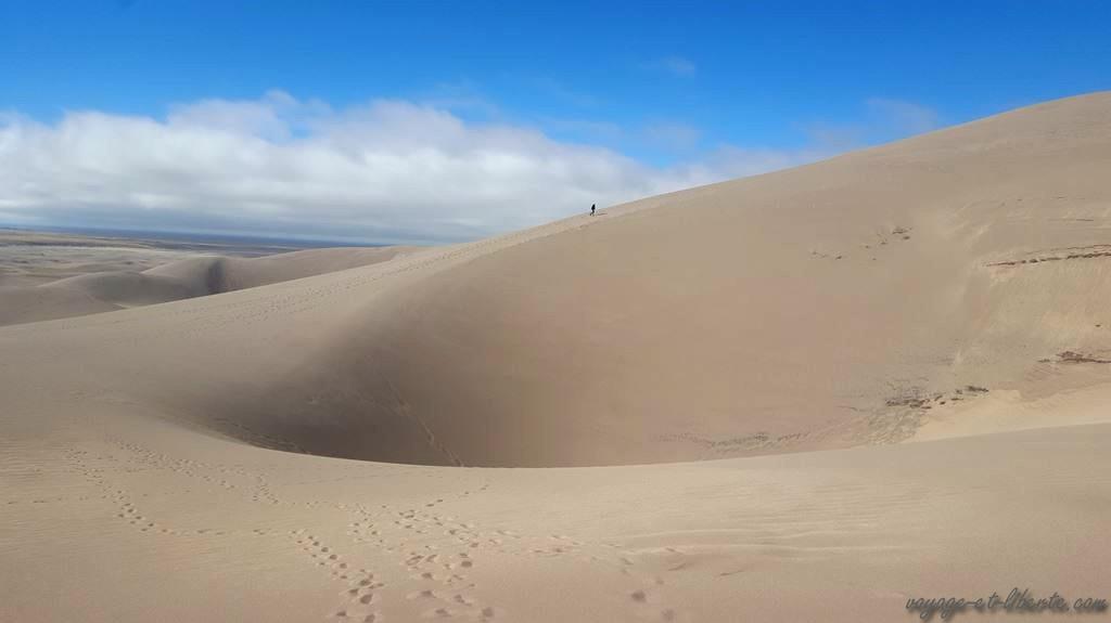 Au matin, nous escaladons les plus hautes dunes de sables d’Amérique du Nord. C’est grandiose et curieusement mon appareil photo capte des couleurs qui diffèrent d’une photo à l’autre. C’est pas grave, c’est joli quand même !