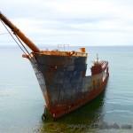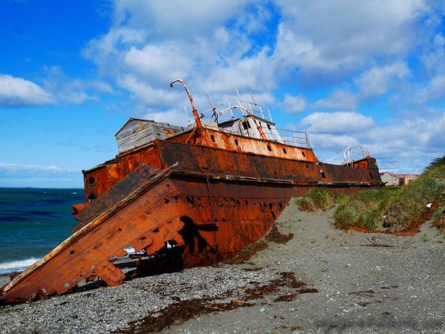 Le vent nous accueille également avec sa douceur habituelle en ces contrées. Ici, ce n’est plus l’homme que tu redoutes en premier lieu (je rappelle que le Chili a lui aussi connu des heures très sombres il n’y a pas si longtemps…). C’est la nature. Nous sommes face au mythique détroit de Magellan qui a suscité tant d’espoirs et de déceptions. Les bateaux échoués ci et là nous rappellent l’âpreté des tempêtes (restons dans le gai et le joyeux