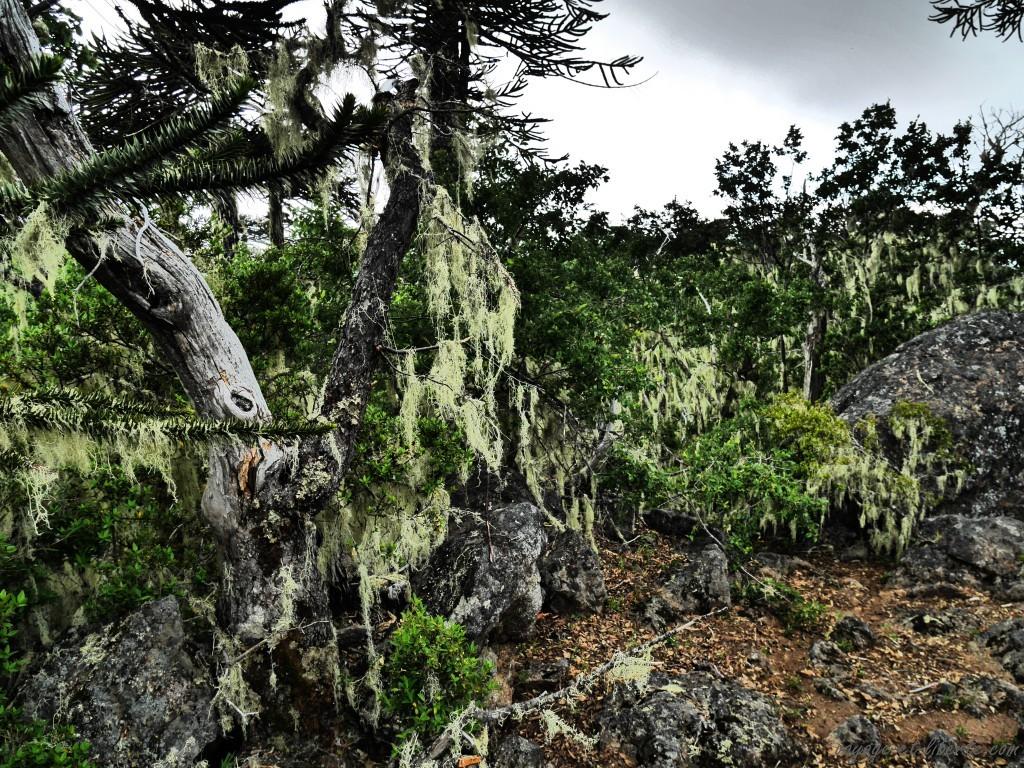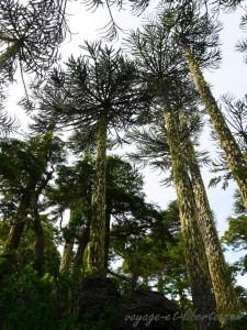 Pour la suite, direction le parc national Nahuelbuta. Nous y arrivons au terme d’un véritable périple. Non qu’il soit très éloigné de nous. Mais sa situation géographique – au sommet d’une montagne – en fait une place imprenable. Nous nous lançons donc à l’assaut de la piste « abrupte » (c’est un euphémisme) : 30 kms de ripio avec régulièrement des montées à 30% – 35 %, voire un peu plus. Pour vous donner une idée du truc, imaginez la montée Bourg d’Oisans – l’Alpe d’Huez (tout le monde a bien vu le Tour de France une fois dans sa vie, non ?!) sans les 72 lacets qui relient les 2 villes, mais avec seulement avec 3 ou 4 : ça monterait fort ! Ben … ici c’est un peu comme ça !!