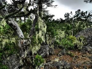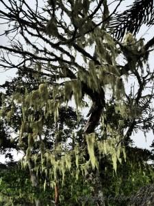 Les arbres sont recouverts d’un parasite barbu qui donne à l’ensemble un air de forêt hantée.