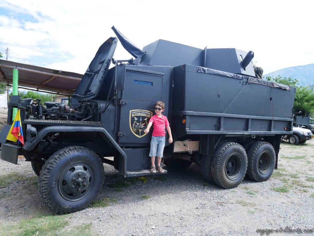 A midi, nous stationnons en bord de route sur un terrain de foot « gardé » par quelques militaires. Curieux et vraiment sympas, tous se pressent autour du véhicule pour le visiter. Nous n’osons pas poser de questions potentiellement gênantes, mais c’est inutile. L’un d’eux vient spontanément nous livrer ses états d’âmes. Pour lui, il est très clair que le processus de paix en cours avec les FARC et consorts n’est qu’une mascarade car la guerre en cours rapporte beaucoup trop d’argent à l’Etat et aux puissants de ce monde. Quand je lui demande si nous risquons quelque chose en tant que touristes, il me dit avec amertume que les seules vraies cibles sont les militaires. Et de fait, chaque jour les journaux rapportent les échauffourées auxquelles certains ont succombé. En attendant, la route Pasto / Popayan est sécurisée et nous pouvons avancer sans souci, à charge pour nous de ne pas avoir envie d’aller bivouaquer sur une piste ou de tailler un bout de conversation avec des villageois excentrés.