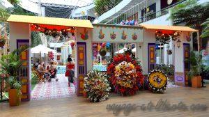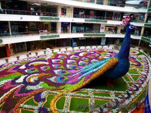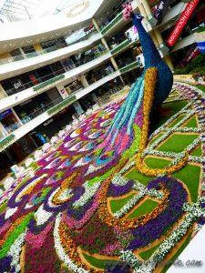 Mais en la matière, c’est le centre commercial Santa Fe, toujours dans le quartier Poblado, qui détient la palme de l’originalité avec cet immense paon réalisé en pétunias, dont j’ai déjà eu l’occasion de montrer une photo.