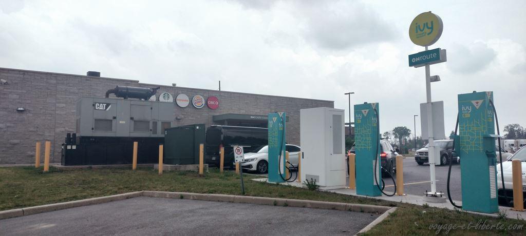 C’est sur l’une d’elles que nous tombons en admiration devant un dispositif que seuls des humoristes auraient imaginé : des bornes électriques alimentées par un énorme groupe électrogène hihi. Curieux…