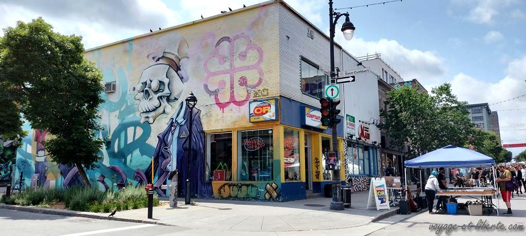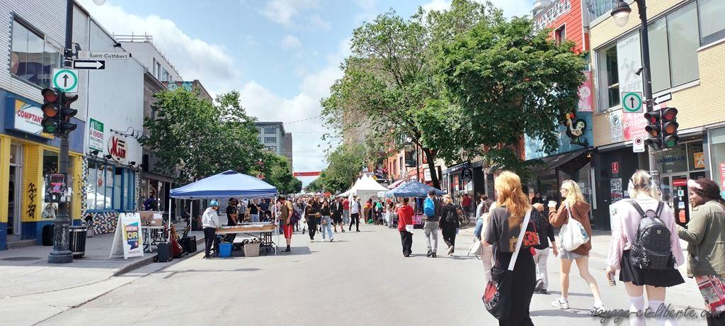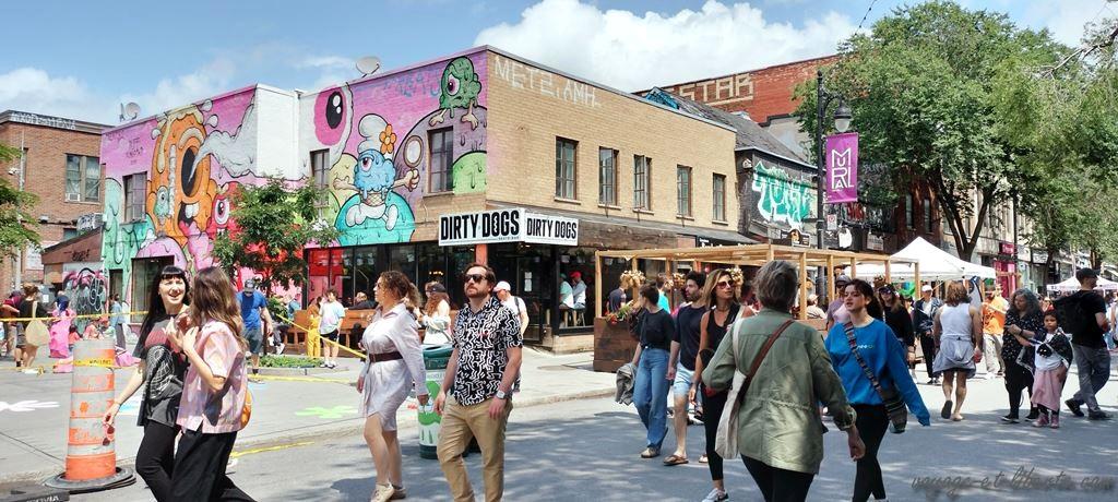 Plus loin le boulevard Saint Laurent a été rendu piéton pour un festival de graphs et de chansons.