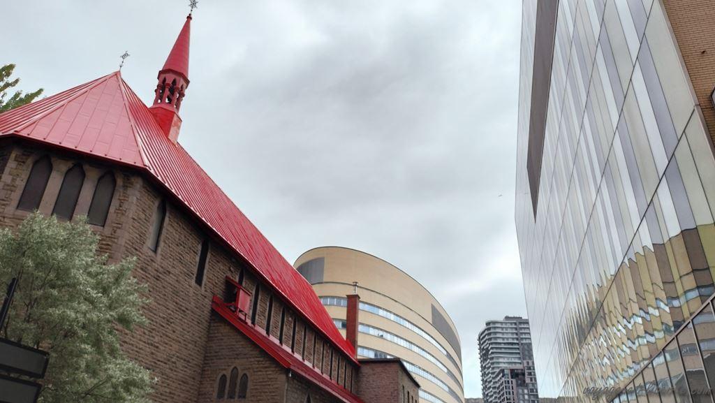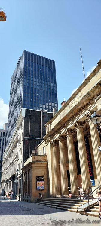 Le moins que l’on puisse dire est que l’architecture de Montreal est pour le moins … insolite : des buildings hyper modernes côtoient de petites maisons mitoyennes très mignonnes ; au milieu d’une rue, un temple neo-romain s’insère entre 2 gratte-ciels ; plus loin les maisons du 17ème siècles jouxtes des immeubles et centres commerciaux modernes. C’est une vraie cacophonie, mais une cacophonie assez sympa qui brise les codes. On ne peut pas dire que ce soit très beau, mais c’est très sympa.