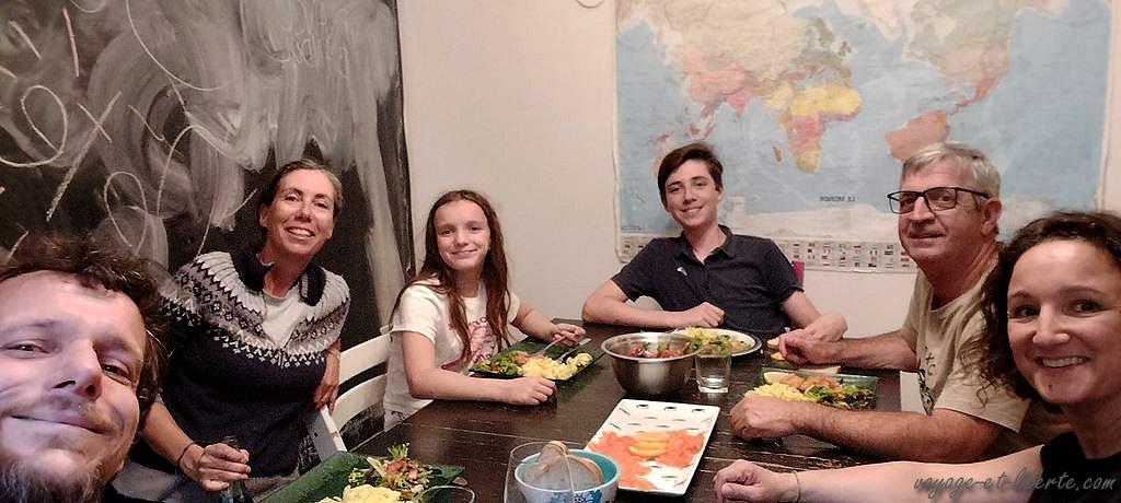 Heureusement, Laurent et Marion nous accueillent à bras ouverts, nous proposent une douche et un bon repas. Nous passons une soirée formidable en leur compagnie, oubliant pour un instant le stress de la route.