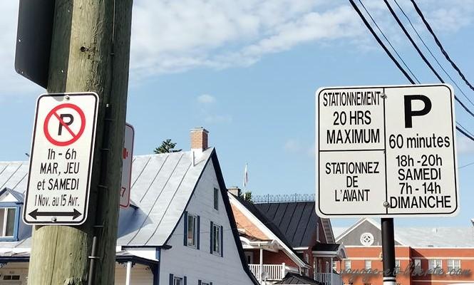 Une question existentielle nous prend aux tripes : où allons-nous stationner ? On passe un premier parking à 5 dollars les 30 mns, puis un second, puis un troisième… Non seulement c’est hors de prix, mais le véhicule ne passe pas en hauteur. Interrogeant un des gardiens nous demandons où nous garer gratuitement – même loin ou très loin – et manquons de le faire mourir de rire. Nous repartons avec cette phrase étrange (mais que nous n’allons pas tarder à comprendre » : « il n’y a rien de gratuit au Québec ».