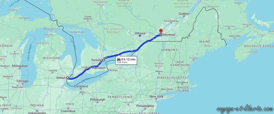 Il est tard quand nous franchissons la frontière canadienne à Windsor, en face de Détroit. Pour une fois, ça passe facilement ! Le douanier canadien est charmant.