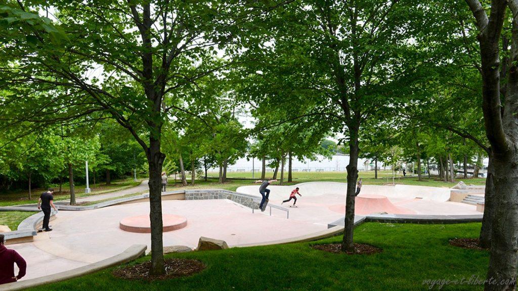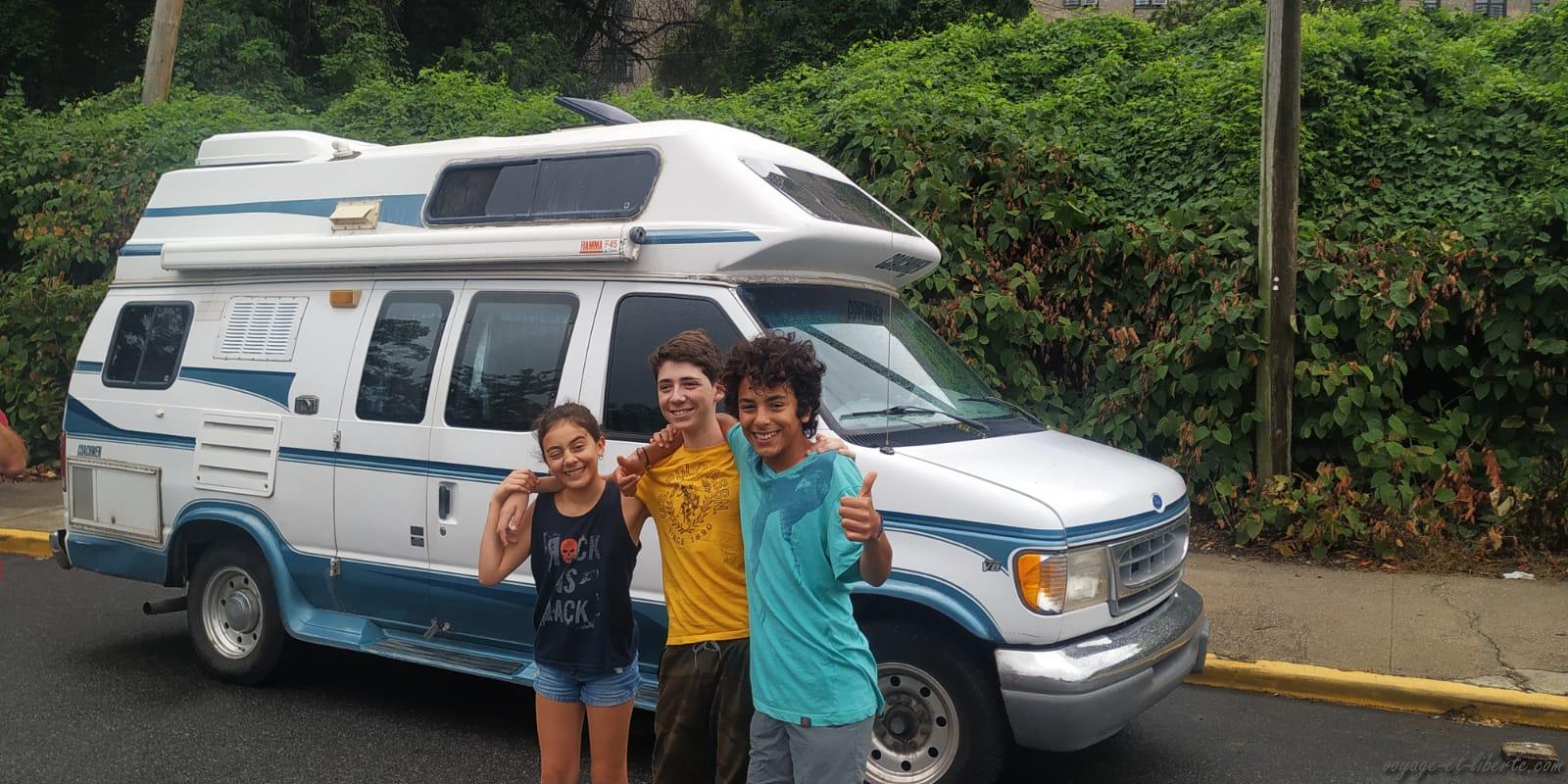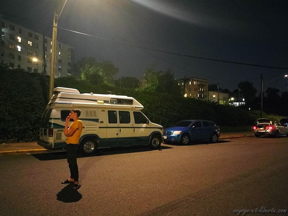 Il fait nuit et nous sommes toujours à bavarder devant nos véhicules avec les amigos, les enfants s’amusant avec un vieux skate abandonné quand des cris s’élèvent du parc à jeux. Des petits enfants se prennent la tête entre eux. Soudain, toutes les nombreuses familles afro-américaines présentes sur les lieux se scindent en eux et les gifles et les insultes se mettent à pleuvoir dans tous les sens ! Ouh merde ! Mais qu’est-ce qu’ils ont tous dans ce quartier à être aussi à cran ?! Le groupe se rapprochant de nous, nous décidons de les laisser se débrouiller entre eux et quittons le parc afin de ne pas être pris à partie, un peu étonnés de cette violence soudaine que rien ne laissait présager. Heureusement que les armes ne sont pas en vente libre ici… Quand je vous disais que j’allais vous faire découvrir un New York inconnu des touristes « normaux » 😂 !