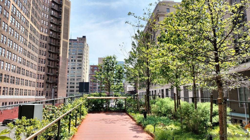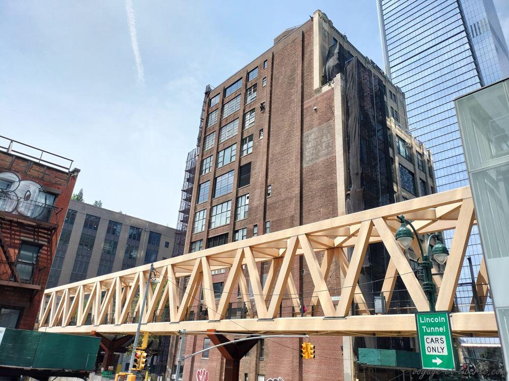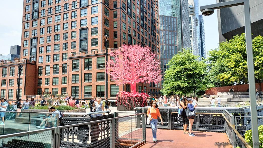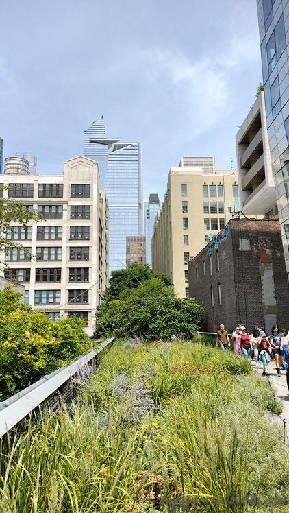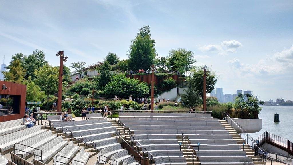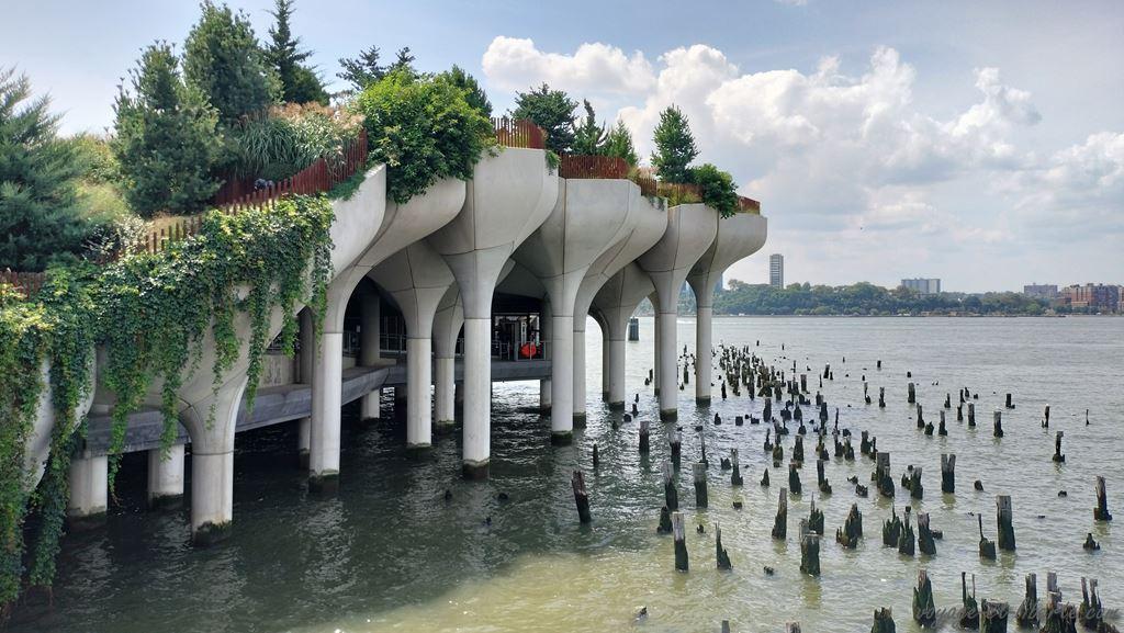 De là, on a une belle vue sur l’Hudson et « Little Island« , ce qui me donne envie de m’en rapprocher ! Il s’agit d’une structure suspendue en béton d’environ un hectare et reposant sur des pilotis. Inaugurée en 2021, elle offre un agréable jardin public pour se promener (voir la vidéo sur la Highline).