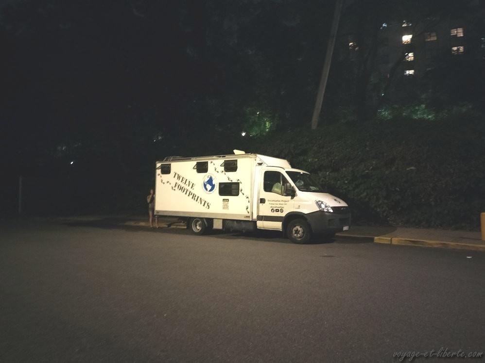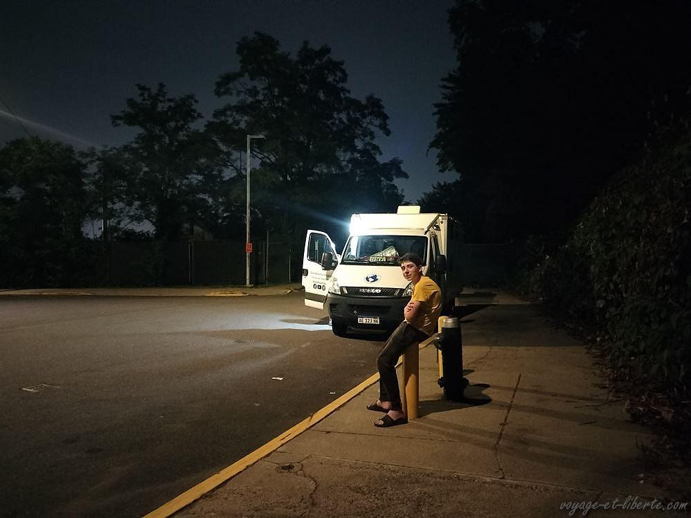 Ignorant cette femme, nous rentrons flegmatiquement dans le van et continuons ce que nous avions amorcé, sans plus lui prêter attention. On a vraiment autre chose à faire que de se battre avec une dingue pour un évènement qui ne s’est pas produit. Au bout de 2/3 minutes de diarrhée verbale déversée sur le voisinage et nous, elle finit par se lasser et s’en aller.