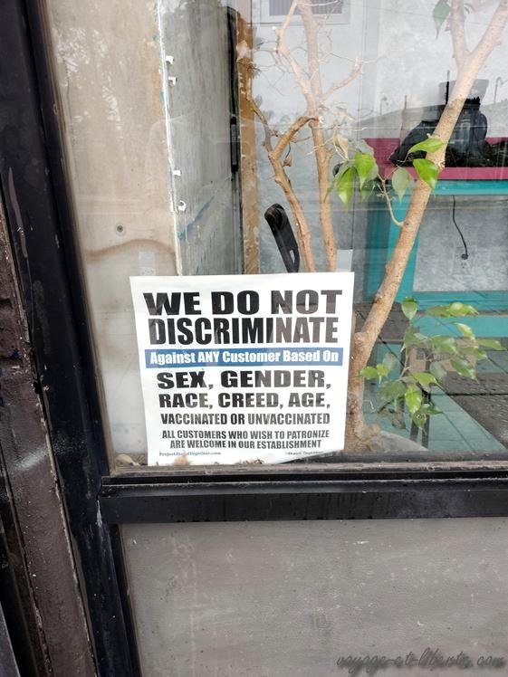 3 mètres plus loin une autre voiture s’est mal garée derrière nous, mais nous avons largement la place de manoeuvrer. Jérôme enclenche la marche arrière, recule de 1.5 mètre et part stationner un peu plus loin. Sa propriétaire, sans sortir de sa voiture, pète alors littéralement un plomb alors qu’il ne s’est absolument rien passé. Elle se rapproche de nous et se met à nous insulter, nous menaçant avec son doigt. Je ne comprends rien d’autre que des « fucks » intercalés entre chaque autre mot et le fait que nous avons voulu lui rentrer dedans pour abîmer sa caisse. Elle gueule tellement fort et de façon si agressive que nous comprenons qu’il vaut mieux ne pas entrer dans son jeu car elle ne cherche qu’à en découdre. C’est la première fois que nous voyons quelqu’un comme ça – excepté en France, hélas. En toutes ces années d’Amérique latine ou du nord ça ne nous est jamais arrivé, ni à titre perso, ni à titre de témoins.
