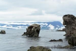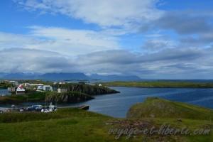 Magnifiques oiseaux ! Cette péninsule mérite le détour, qui est ensuite récompensé par des dizaines et des dizaines de kilomètres de pistes défoncées. Le petit conseil de la maison c’est de prendre le bac qui assure la liaison entre cette péninsule et celle du Snaefellsnes. Il se prend à Vattnsfjordur. Il y en a un un peu avant midi et un autre le soir. Celui de midi nous a filé sous le nez et comme nous n’avons pas voulu attendre, on a dû assumer de faire au moins 200 kms de pistes affreuses et en travaux. Or, en Islande, c’est pas comme chez nous ! Non, non, non ! Quand il y des travaux, tu dois te frayer un chemin parmi les énormes engins qui défoncent la montagne. A tes risques et périls.