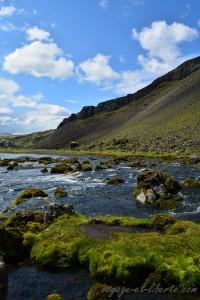 Ensuite retour vers le Nord est. Petit arrêt à Egilsstadir pour visiter les cascades d’Hengifoss et de Litlanesfoss.