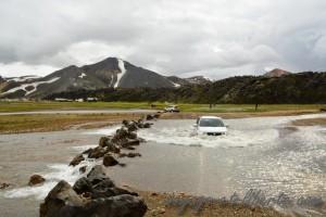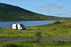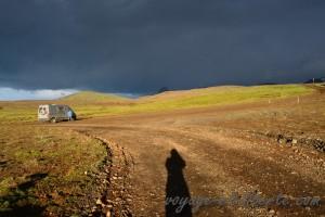 Bien que cela soit interdit, nous n’avons pas eu d’autre choix que de passer la « nuit » au bout de la F 235 au-dessus du lac Langisjor avec des français, Pascal et sa maman et son neveu Tom. Avec ça, la météo était toujours aussi radieuse