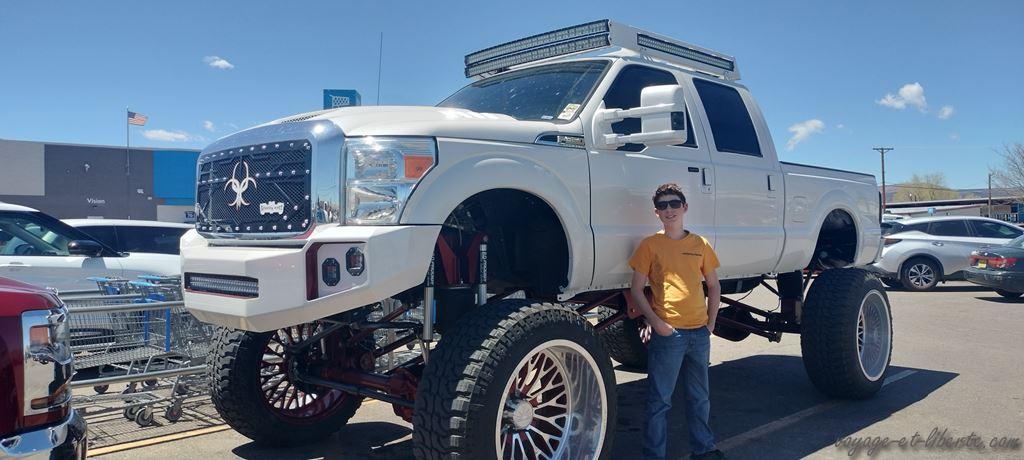 Coup de bol monstrueux, c’est en nous rendant au Walmart que nous nous rendons compte que toute la ville est là ! Comme c’est le seul de la région, c’est THE PLACE TO BE ! Allez ! On va prendre un petit bain de foule au rayon viande hachée, ça nous remontera le moral (on ne peut plus compter sur l’alcool, on a décidé de faire un long break suite à notre séjour en France hihi) ! Mais plus exactement, c’est le parking qui est le LE lieu de rencontre ! Chacun vient y exposer sa caisse et la faire rugir pour épater la galerie ! Plus typique, tu meurs !