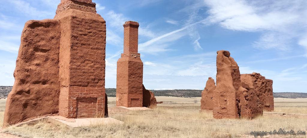 Nous stoppons dans un monument national américain, Fort Union. Un endroit stratégique au croisement du chemin commercial historique de Santa Fé, des camps indiens (de l’époque) et du Colorado, où les pionniers du 19ème siècle avaient établi une base militaire.