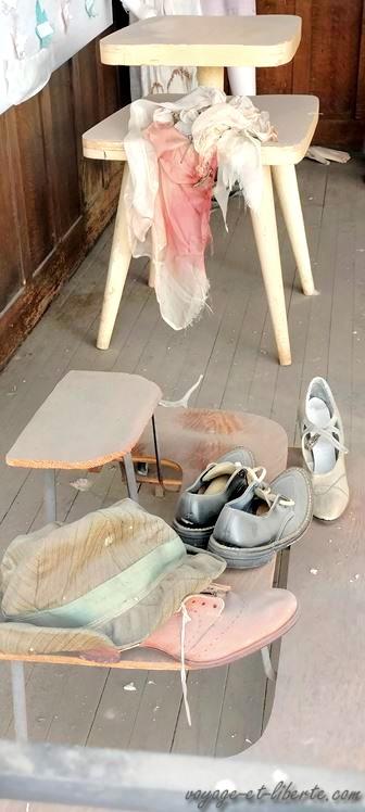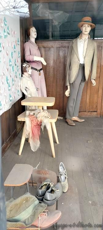 Il reste la voie ferrée et sa gare (anciennes gloires locales) et … un très vieux bazar fondé en 1913. Quand ferma-t-il ses portes ? Même ses habitants ne s’en souviennent plus. Ses vitrines encore pleines de mannequins délabrés et habillés comme dans les années 1950, ses locaux puant la moisissure à travers les vitres, semblent nous dire que tout est à l’abandon depuis plus d’un demi-siècle. Il ne reste que la façade, tel un décor de théâtre illusoire.