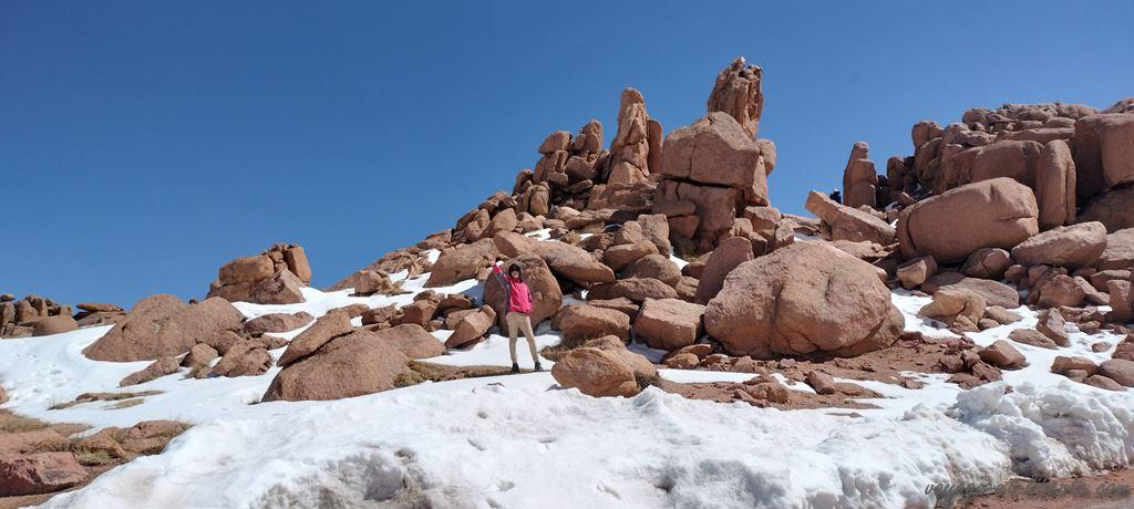 Bien que le site soit superbe, dans une plaine jaunie et désolée, au bord d’une chaîne de montagnes enneigées, Jérôme et Carlito sont à 2 doigts de se pendre au mat du drapeau : ils n’en peuvent plus de toute cette désolation que nous traversons depuis 15 jours. Heureusement, j’ai plus d’un tour dans mon sac ! Pour les remotiver, je leur fais miroiter notre future soirée à Raton ! Les guides sont unanimes : c’est une petite ville formidable !
