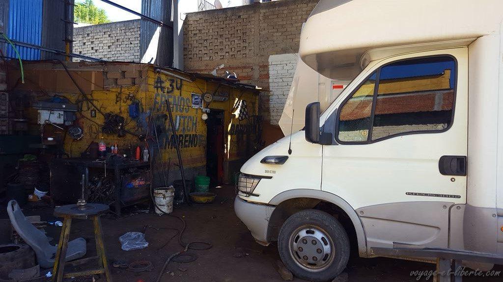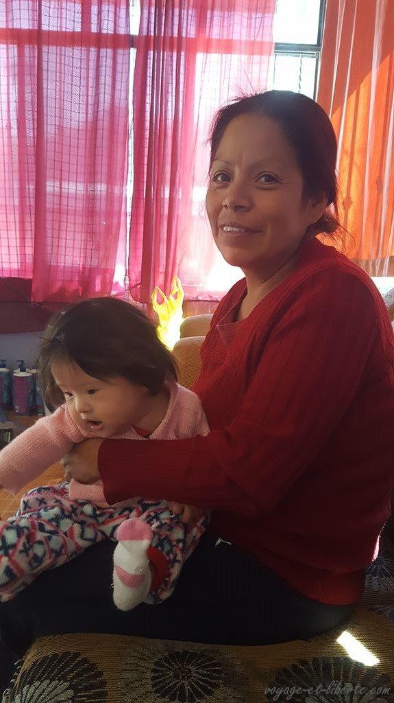 Pour autant, nous savons que nous allons passer du temps au garage. Le garage de nos amis Jesus et Gabriela à qui nous avions promis de revenir ! Le samedi matin, sans nous annoncer, nous déboulons chez eux. La surprise est telle que Gabri se met à pleurer, tandis que Fernanda, la petite amie de Carlito, reste muette de stupéfaction. Depuis l’année dernière, la famille compte un nouveau membre, une petite Daniela que nous rencontrons. Je n’ai rien à vous raconter qui puisse vous intéresser sur la semaine que nous avons passé en compagnie de nos amis, entre réparations du frein à main du CC et du mécanisme de la marche d’escalier, restos, bavardages… C’était juste un moment heureux, vraiment heureux qui contrastait avec l’austérité de notre simoizaine colombienne.