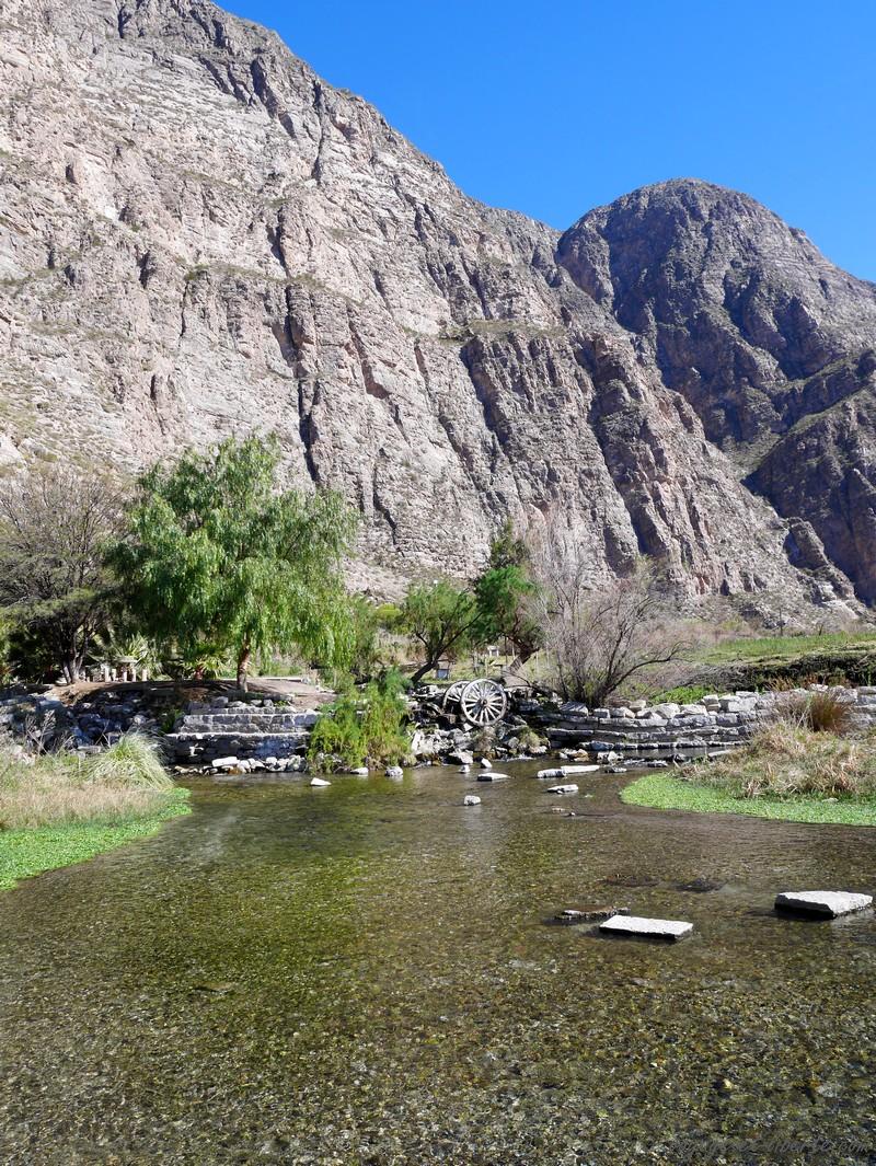 Et puis voilà … Sans nous y attendre, nous avons été rattrapés par les nuages, le froid et la pluie, la température s’effondrant d’une vingtaine de degrés. Inutile de chercher à visiter quoi que ce soit. Nous renonçons ainsi à nous rendre dans deux parcs naturels très connus (Talampaya et la vallée de la lune), sans trop de regrets il est vrai vu les tarifs pratiqués (l’équivalent de presque 200 euros pour 3) ! Heureusement, le très agréable camping « Agua Negra » de San Jose de Jachal, traversé par une très jolie rivière avec de l’eau ( !), nous tend les bras ! Le beau temps étant revenu, nous y passons quelques jours tant il est bon de voir de la vie au milieu des ces terres si arides. De l’eau, de la verdure, des animaux … il y a donc de la vie sur la Lune ?!