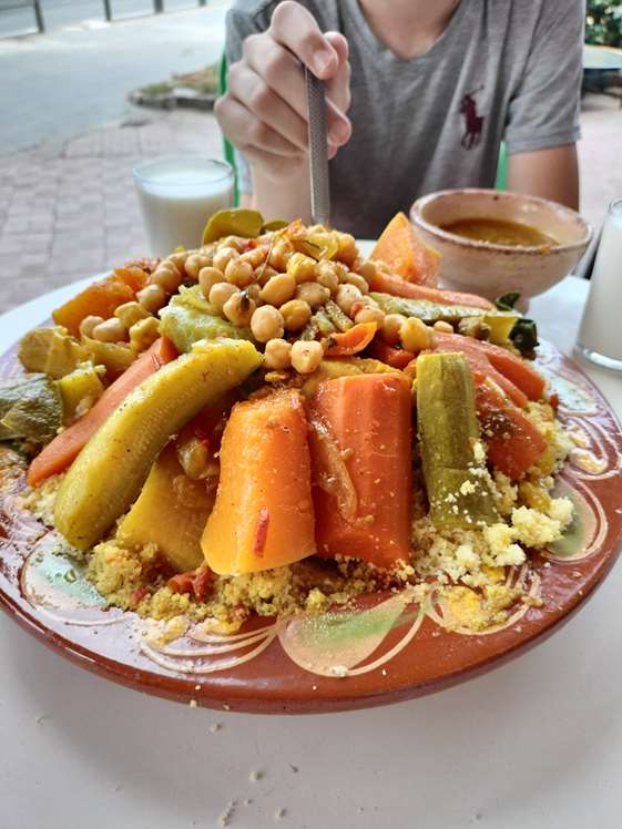 Petite nuance, cependant, à mon enthousiasme premier : ne cherchez pas un couscous un autre jour que le vendredi car vous n’en trouverez pas, sauf à vous rendre dans un resto pour touristes ! (Pire, ne demandez pas un couscous merguez, malheureux ! C’est presque un crime de lèse-couscous au Maroc ! C’est comme demander à un Français d’adoucir un grand cru de vin rouge en y ajoutant du 7up  ou du Fanta fraise pour le transformer en sangria 🤣).