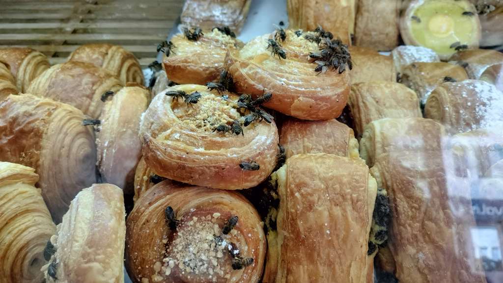 N’oublions pas leurs délicieuses pâtisseries, sucrées, pleine de miel et assez grasses. Un vrai régal qui plaît non seulement aux humains, mais aussi aux … abeilles ! Pour des raisons que je voudrais connaître, il y a des essaims entiers dans chaque pâtisserie qui butinent les gâteaux. A quand un miel « toutes friandises » ?!