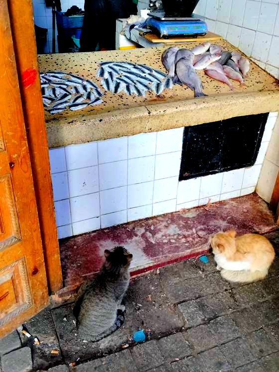 En revanche, naître chat à Rabat , semble procurer ipso facto un statut de semi divinité :mrgreen: . Gras ou maigrichons, sains ou pouilleux, jeunes ou vieux, ils jouissent en effet d’une espèce de privilège leur accordant 1°) le droit de pulluler 2°) de réduire en esclavage nombre de bonnes âmes humaines charitables qui les nourrissent et les choient à chaque coin de rue, amassant croquettes et petites gamelles d’eau pour qu’ils ne manquent de rien.