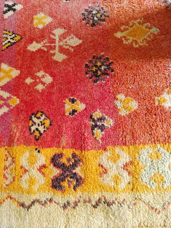 Je pensais mon amie un peu maniaque, mais la scène a manqué de se renouveler plusieurs fois chez d’autres. Je dis bien « manqué » car j’avais gardé l’anecdote en tête et avais compris qu’il ne fallait pas marcher chaussée sur un tapis au Maroc. Il n’empêche ! Dès que tu t’approches à moins d’un mètre de l’un d’eux avec tes godasses, les gens se mettent à transpirer nerveusement, prêts à hurler « attention !!!! ». On dirait qu’ils vont défaillir, ce qui tend un peu l’atmosphère 😅. Mais que se passe-t-il donc dans leur tête à ce moment-là  ?!