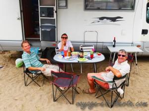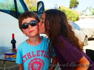 Coup de bol monstrueux, nous tombons opportunément sur Philippe, Agnès et Eva, une famille stéphanoise / bretonne partie depuis le Canada il y a 18 mois ! Bien sûr nous sympathisons immédiatement, garant pour deux jours nos campings cars de façon assez rocambolesque sur le parking d’un marchand de fruits en bord d’océan. Les enfants sont ravis et l’anniversaire fêté dignement !