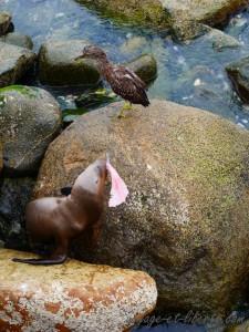 Le spectacle est vraiment incroyable, les pélicans volant en tournoyant au-dessus de nos têtes, un bébé otarie s’en allant un poisson dans la gueule !