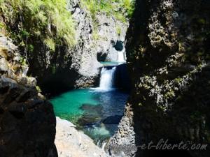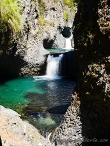 La chaleur semble satisfaire tous les estivants. La réserve des « Radal 7 tazas » permet d’accéder à un très joli ensemble de cascades se jetant les unes dans les autres, dans des gorges de basaltes.