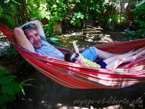 Sympa, il nous indique un très bon resto où nous passerons une bonne partie de l’aprem à nous balancer dans des hamacs ombragés. Rien à voir avec le reptilien du parc !