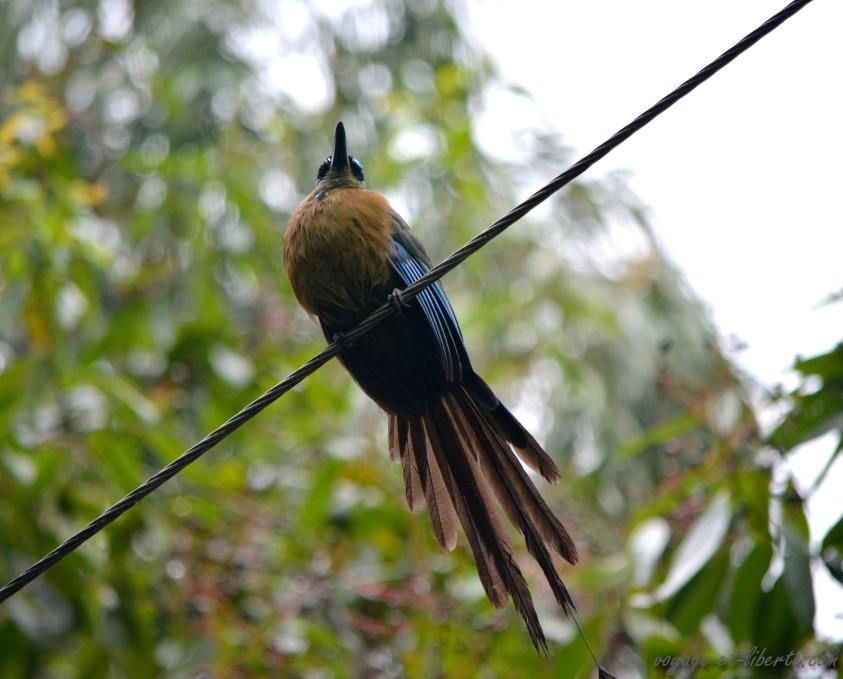 Des dizaines de colibris, ressemblant à autant de petites fées, virevoltent au-dessus de la rivière. Nous les observons longuement car leur jeu consiste à récupérer au vol les gouttes d’eau qui s’échappent de l’écume formée par les cascades. Rapides les bestioles !!