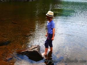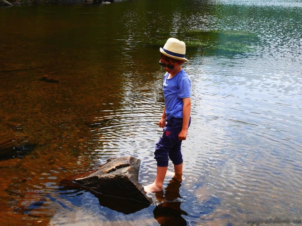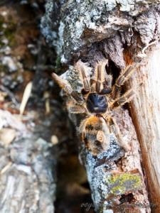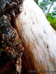 Gertrude est une araignée digne de ce nom, 6 cms d’envergure, 8 pattes, 8 zieux, plein de poils. Elle hésite elle aussi à se baigner. Mais elle n’a pas son maillot de bain et n’aime pas qu’on la voie à poil. Sympa, elle passera quand même un long moment jouer à cache-cache avec nous !
