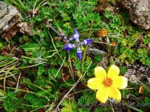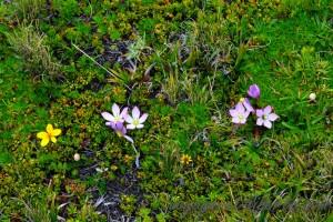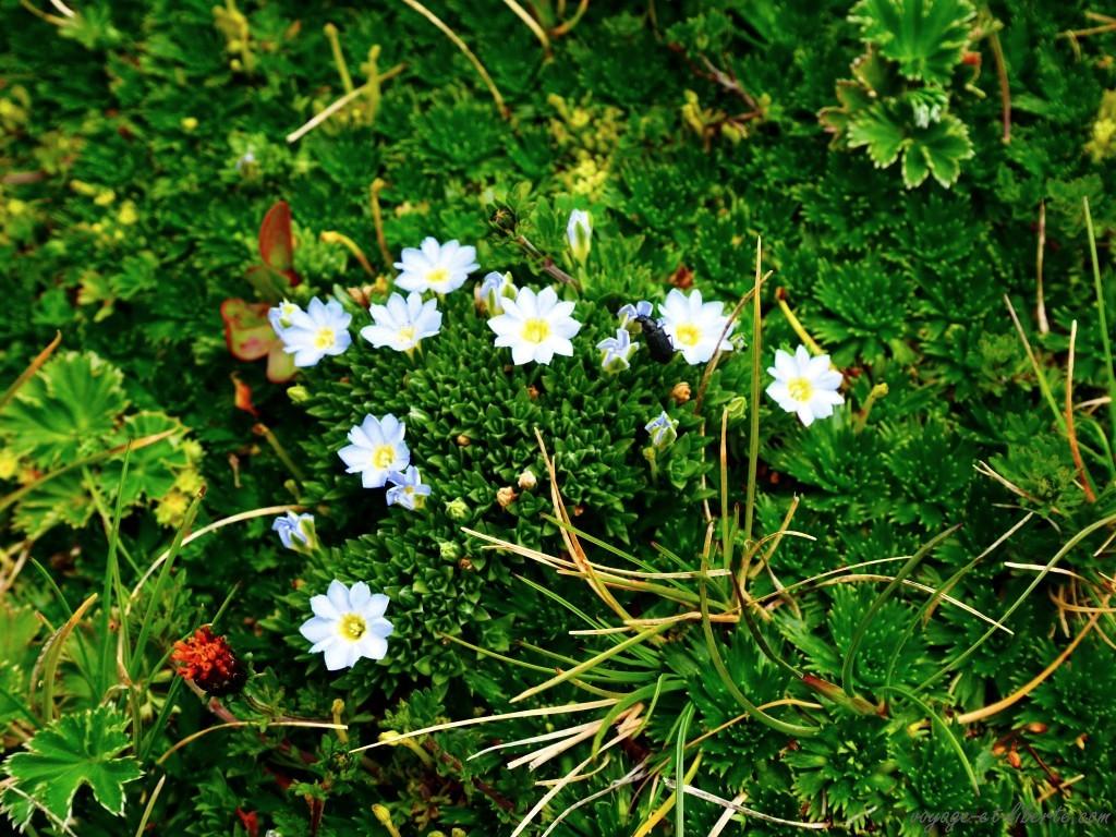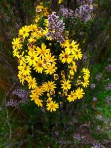 La flore locale est automnale : colchiques et sortes de bruyères tiennent compagnie à d’autres fleurs dont je ne connais pas le nom.